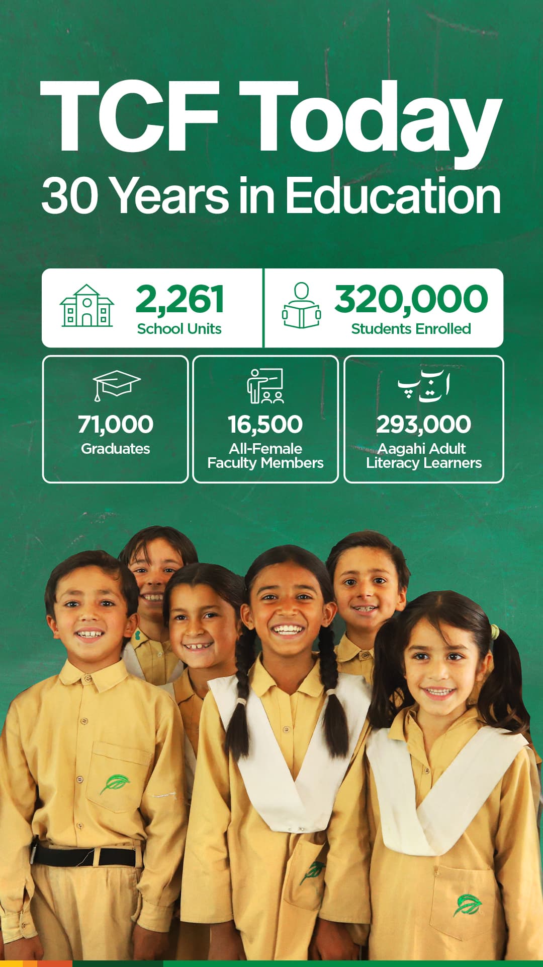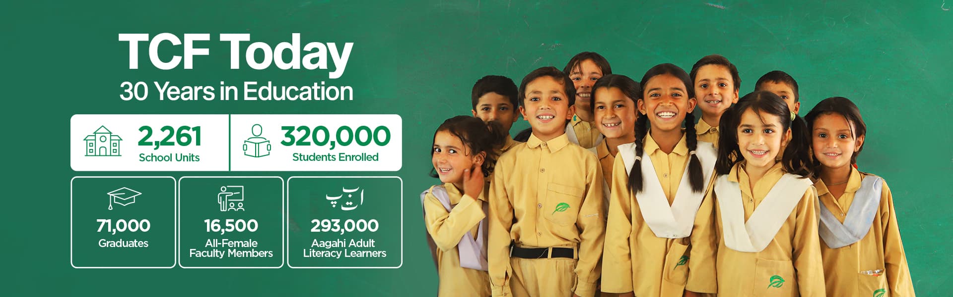 The Citizens Foundation (UK) is a UK registered charity that supports the education of underprivileged children in Pakistan. It achieves this by raising funds and awareness to support the education programmes of The Citizens Foundation, Pakistan’s leading education charity. Since 1995, TCF has been providing life-changing education through purpose-built schools in the heart of Pakistan’s urban and rural slums. Today, TCF runs “perhaps the largest network of independently run schools in the world” (The Economist). With an all-female faculty, TCF is also the largest private employer of women in Pakistan. We have built over 51 schools, of which 19 run afternoon shifts.